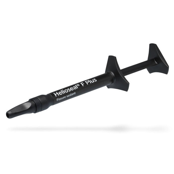 Helioseal F Plus jest światłoutwardzalnym lakiem szczelinowym w kolorze białym, uwalniającym fluor. Zalety fluoru: wzmocnienie odporności szkliwa dzięki remineralizacji i zatrzymaniu demineralizacji, zmniejszenie ilości płytki nazębnej, działanie bakteriotoksyczne.