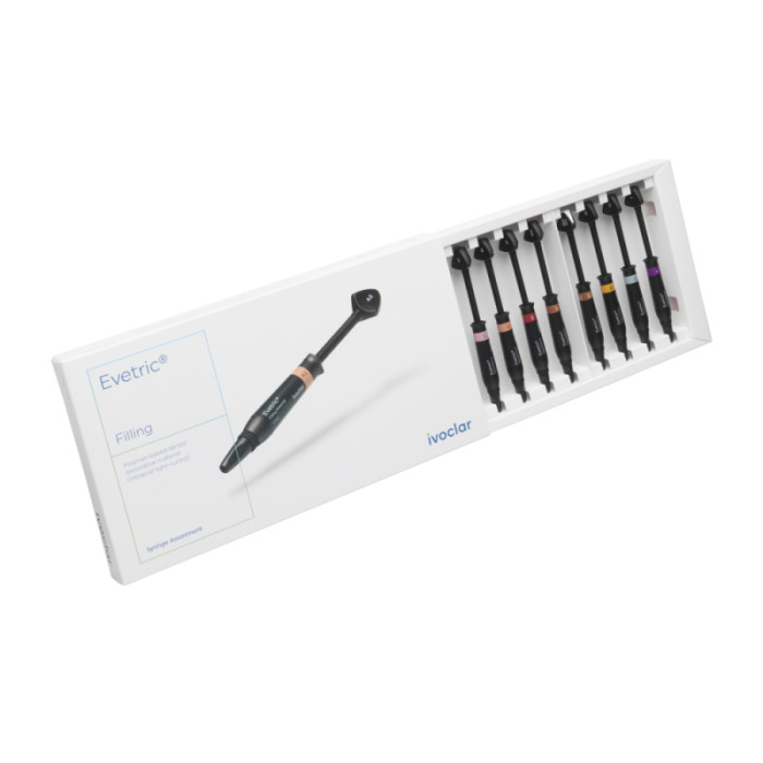 Evetric to uniwersalny kompozyt nanohybrydowy najnowszej generacji. Naturalnie wyglądające wypełnienia zarówno w zębach przednich, jak i bocznych, dzięki różnym stopniom przezierności zębiny i szkliwa.