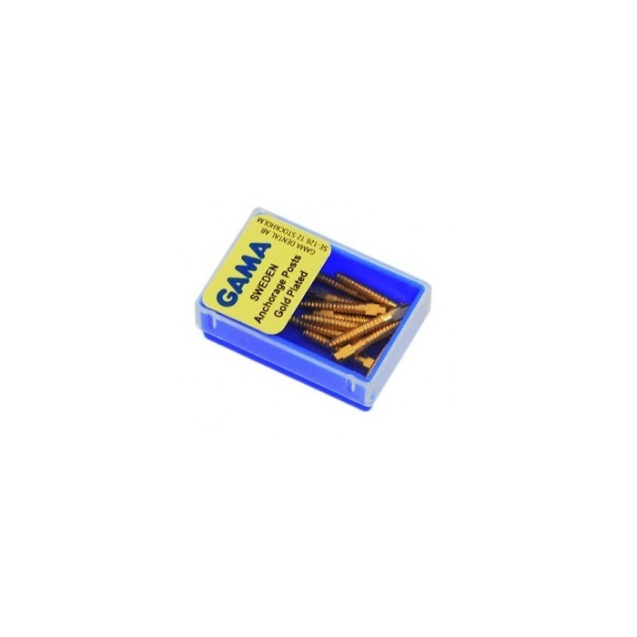 Pozłacane wkłady koronowo - korzeniowe w 17 rozmiarach. Części korzeniowe ze standardowa główką.