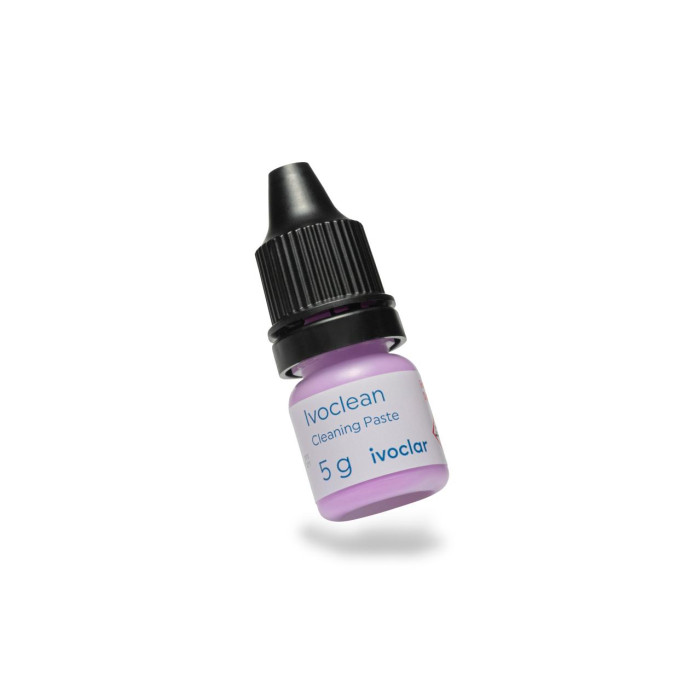 Uniwersalna pasta czyszcząca Ivoclean skutecznie czyści wewnętrzne powierzchnie uzupełnień protetycznych zanieczyszczone po ich przymiarce w jamie ustnej, co jest konieczne przed zabiegiem cementowania adhezyjnego.