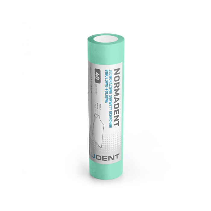 Dwuwarstwowe serwety Normadent nawijane po 40 sztuk na rolce. Chłonna bibuła wzmocniona folią PE.