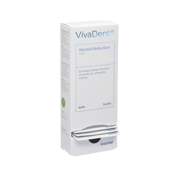VivaDent Aerosol Reduction Gel redukuje spray i chmurę wodnego pyłu, do skalingu ultradźwiękowego.