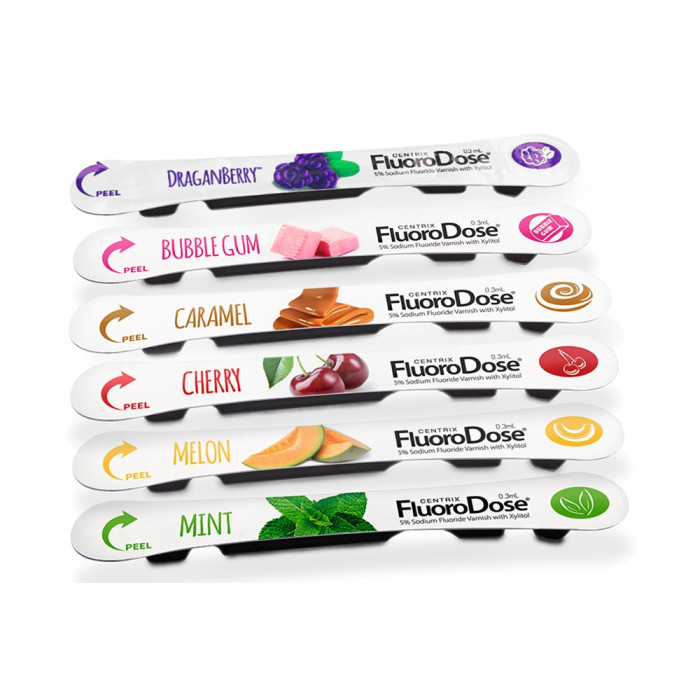 FluoroDose jest lakierem fluorującym zawierającym 5% fluorku sodu, pakowanym w jednorazowych dawkach LolliPack, całkowicie aseptycznych i łatwych w zastosowaniu.